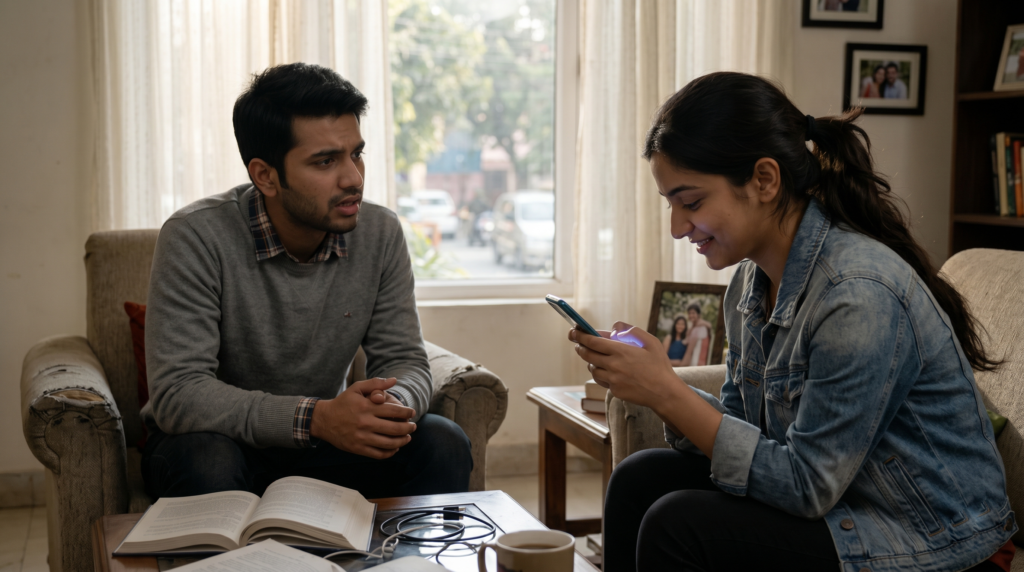 अगर कोई conversation के बीच screen देखे, normal लगता है।